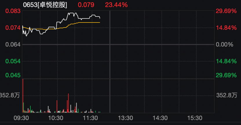 大幅波動個股方面,卓悅控股上午大漲,盤中漲幅一度接近30%。