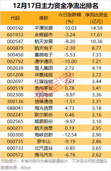 尾盤主力資金凈流出方面,平潭發(fā)展、通宇通訊、永輝超市尾盤主力資金凈流出超1億元;順灝股份、久之洋、華菱線纜、賽微電子尾盤主力資金凈流出均超8000萬元。
