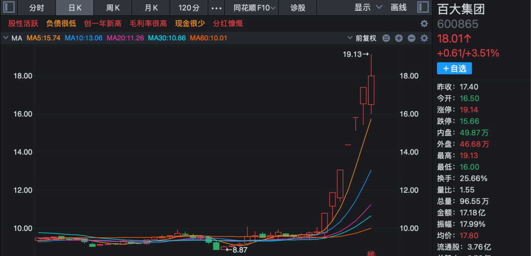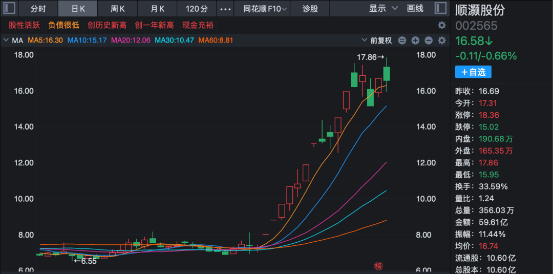 免稅概念、網(wǎng)紅經(jīng)濟(jì)、新零售、供銷社等相關(guān)板塊也均強(qiáng)勢(shì)上攻,順灝股份16日8漲停,南京商旅10日5漲停,九牧王6日4漲停,美凱龍、皮阿諾等亦多次漲停。