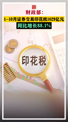 財(cái)政部:1-10月證券交易印花稅1629億元 同比...
